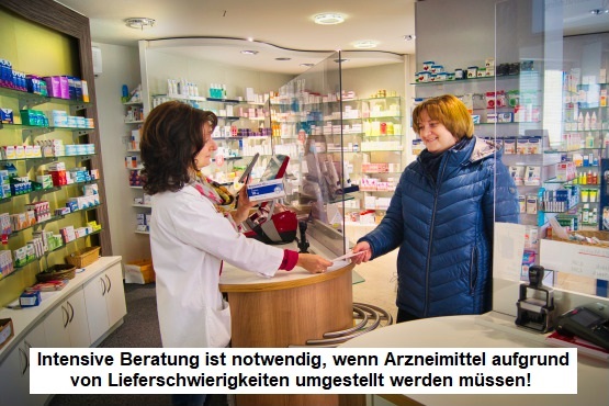 Der größte zeitliche Aufwand ist die Nachfrage bei der Recherche nach noch lieferbaren Arzneimitteln bei Großhändlern und Herstellern. Es muss überlegt werden, auf welche Arzneimittel ausgewichen werden kann. Das kann eine andere Darreichungsform, eine andere Wirkstärke oder sogar ein anderer Wirkstoff sein. Dies erfordert natürlich Rücksprache mit dem verordnenden Arzt. Die Rezepte müssen geändert werden und viele nochmals in der Arztpraxis zur Änderung vorgelegt werden. Außerdem ist der Aufwand bei der Beratung der Patientinnen und Patienten enorm gestiegen, weil bei einem Umstieg auf ein alternatives Medikament besonders gründlich aufgeklärt werden muss.